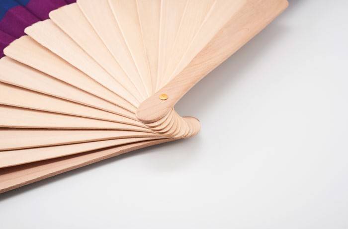 Eventail manuel en bois et en polyester.