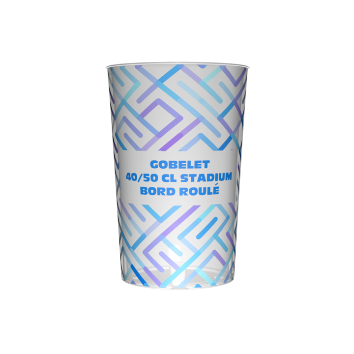 Gobelet éco-responsable réutilisable translucide avec marquage. Contenance utile 40 cl, contenance pleine 50 cl. Poids 37,6g. Matière PP. Hauteur 156mm. Marquage en quadrichromie digitale sur 208 (L) x 155 (H) mm. Fabrication et personnalisation en France.
