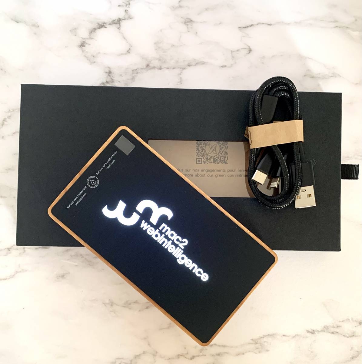 MAC 2 webintelligence, entreprise qui accompagne dans la réalisation de projets digitaux, a fait appel à nos services pour la confection de ses powerbanks personnalisées.