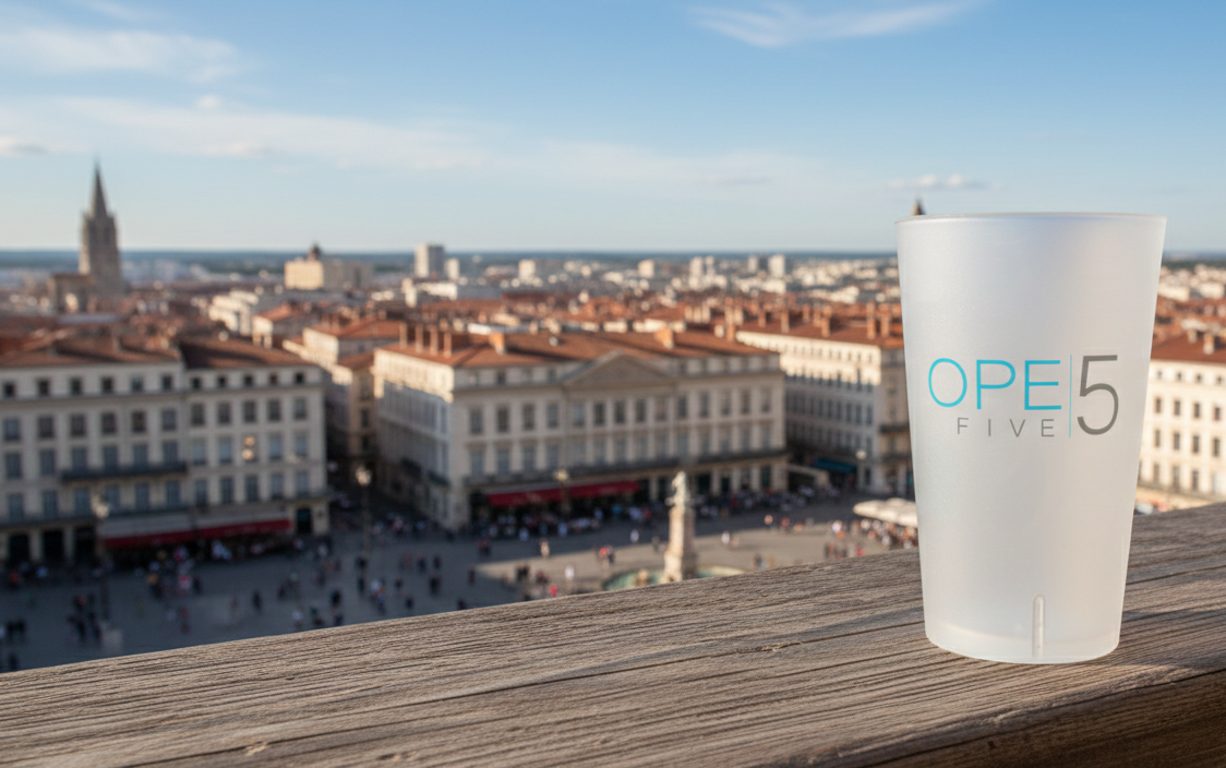 Le gobelet réutilisable personnalisé règle une partie de ce problème — sans que ça ne coûte plus cher qu'un consommable standard, sur la durée. Fabriqué en France, marqué à vos couleurs, utilisé bien au-delà de la journée de l'événement : l'écocup est l'un des rares objets publicitaires dont on peut dire sans rougir qu'il sert vraiment. OPE FIVE accompagne entreprises, associations et collectivités partout en France, et notamment à Montpellier, Nîmes, Sète, Béziers et dans tout l'Hérault, pour concevoir le gobelet qui correspond à votre projet et votre budget.