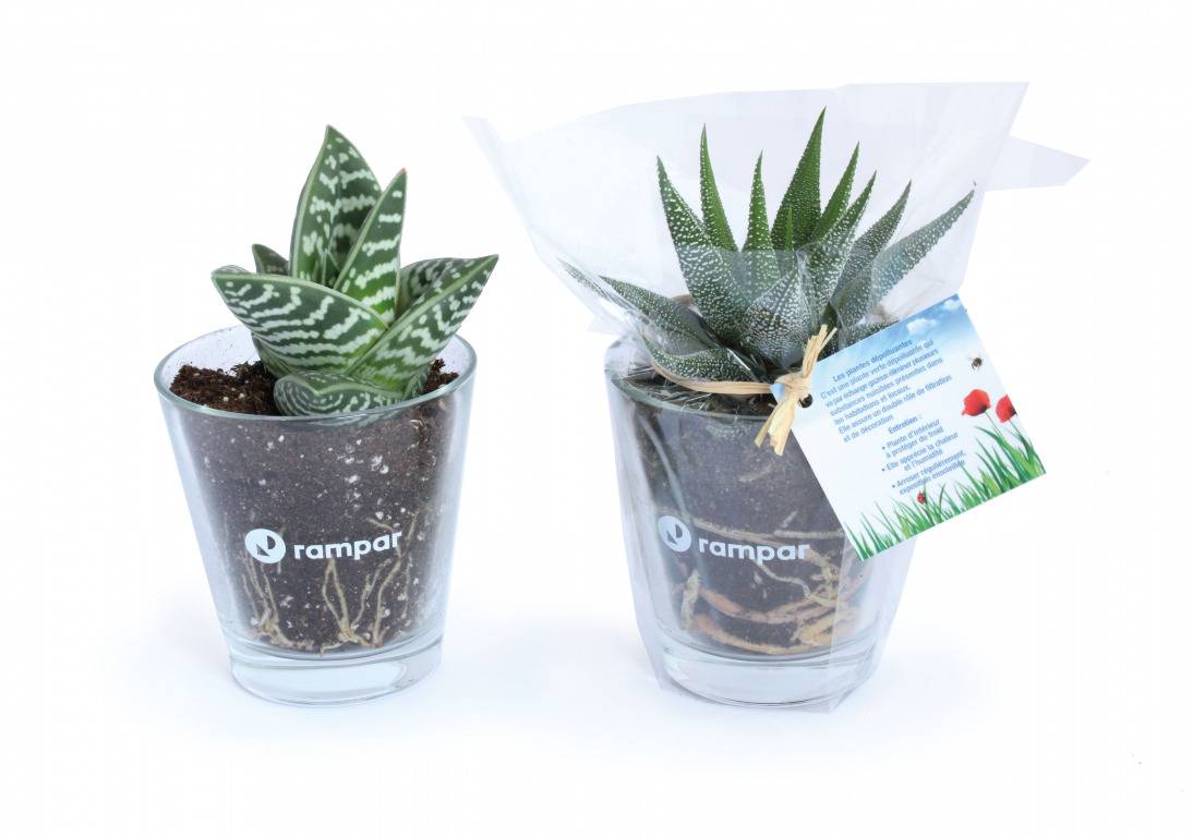 Mini plante dépolluante en pot personnalisé fabriqué en France en terre cuite de 7 cm. Large choix de plantes : Palmier, Aloé, Haworthia, Croton, Ficus, Dracaena, Cactus et Gasteria.