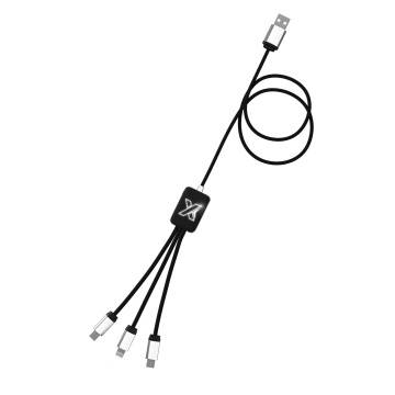 Pouvant recharger 3 appareils en même temps, le câble design personnalisé est un câble en finition métal, soft touch compatible avec IPhone et Android.