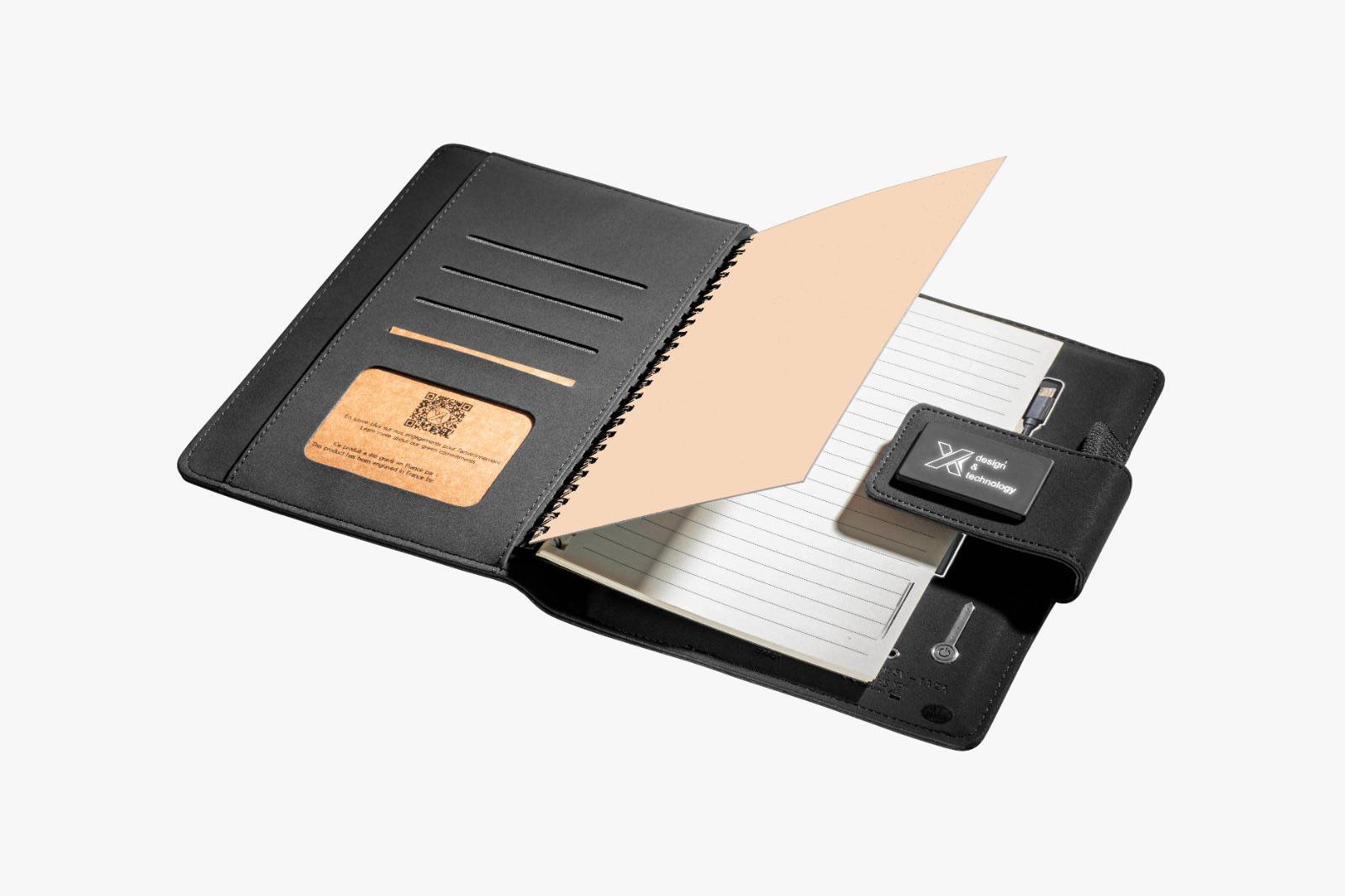 Un bloc-notes peut toujours être utile au travail. Pour apporter un petit plus à cet objet publicitaire incontournable, nous vous proposons d’offrir à vos salariés le power notebook. Un carnet high tech personnalisable avec votre logo qui apparait en marquage lumineux sur la couverture en PU finition microfibre. A l’intérieur de la couverture, un carnet en dimension A5 vous est déjà fourni en papier recyclé et 100% biodégradable.